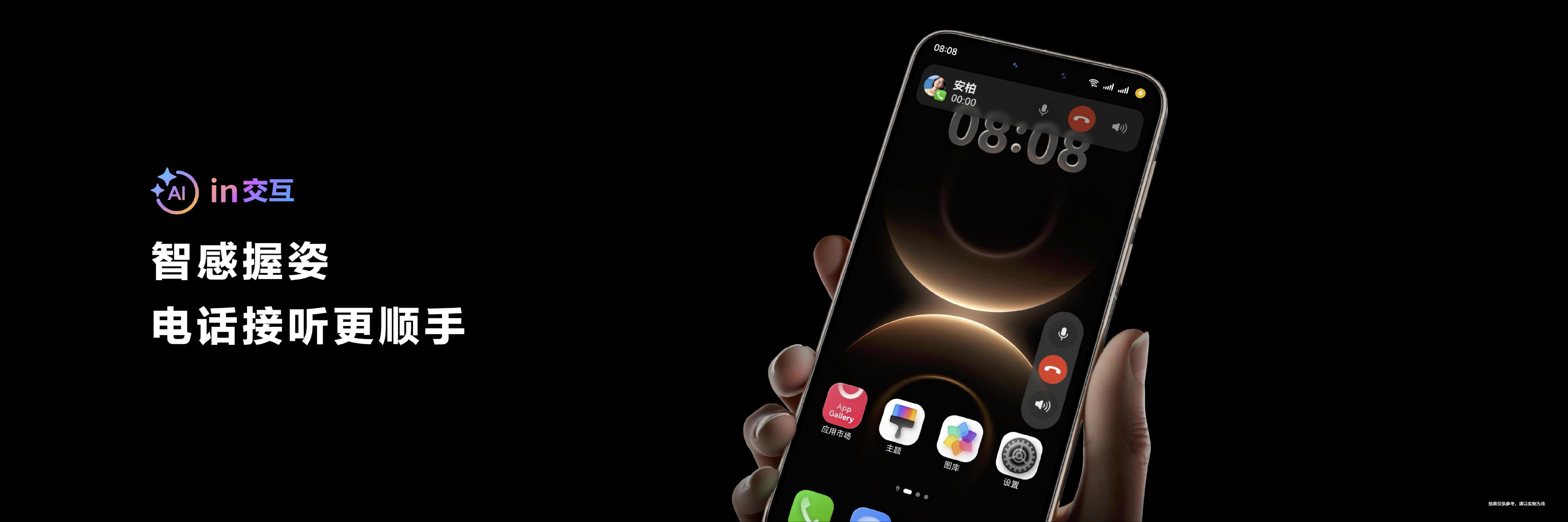 现在手机屏幕越来越大,对于单手党来说,接听电话有时候还得倒手操作。HUAWEI Mate 80系列内置AI智感握姿功能,可智能识别左右手握持姿势,来电时接听按钮自动移至手持边缘,方便一键触屏接听。这种被大多数手机忽视的细节,呈现了华为对用户的感知力。