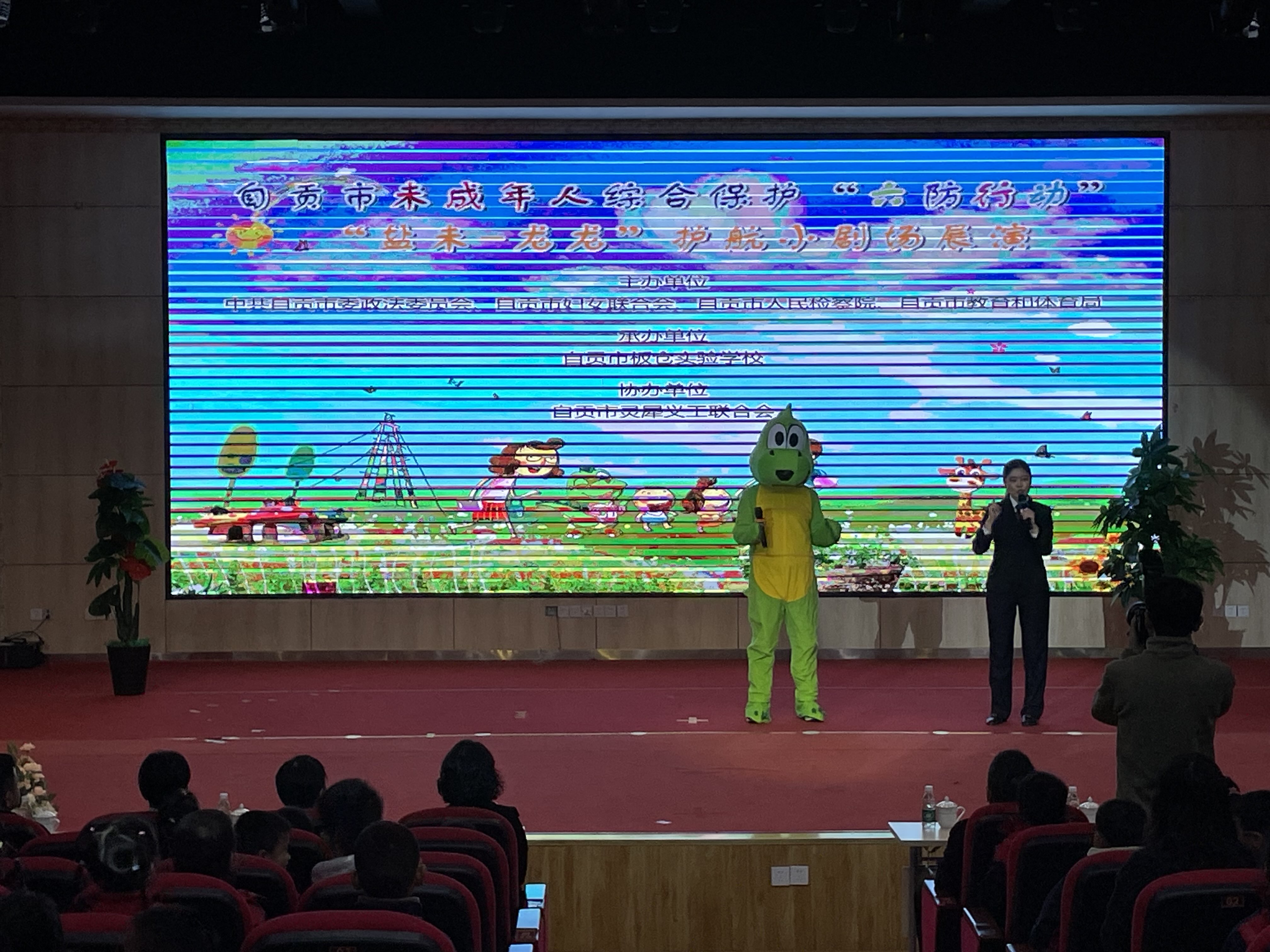 12月18日下午,自贡市未成年人综合保护“六防行动”之“盐未—龙龙”护航小剧场展演活动,走进自贡市板仓实验学校。2018年起,自贡市妇联就联合大安检察院,以小朋友们熟悉的动画形象为基础,以寓教寓乐的形式打造了儿童保护情景剧,在全市进行展演。下一步,儿童情景剧展演宣教模式将陆续在全市各学校进行推广。